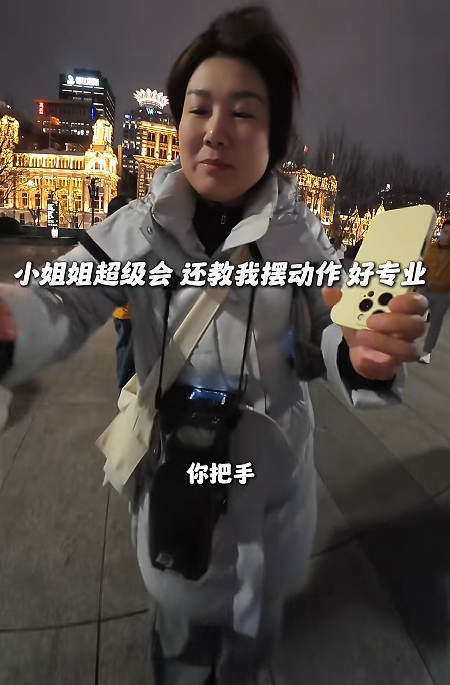 一位路东谈主姑娘姐得知“博主思要拍一张外滩形式照后,绝不夷犹地提供匡助。